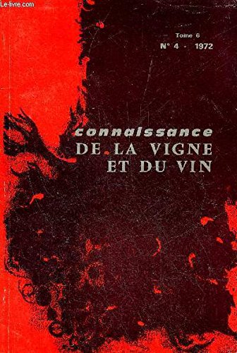 Let's read this book immediately CONNAISSANCE DE LA VIGNE ET DU VIN N°4 TOME 6 1972 - GALET P. — La production mondiale des vins (suite) POUGET R. et JUSTE C. — Le choix des porte-greffes de la vigne pour les sols calcaires BELCHIOR A.P. et CARNEIRO L.C. PDF Download. Do not forget.