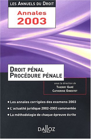 Droit pénal et procédure pénale 2003 : L'essentiel de l'actualité juridique, méthodes et annales Download or read online books in PDF, EPUB, Tuebl, and Mobi Format. Click Download or Read Online button to get Droit pénal et procédure pénale 2003 : L'essentiel de l'actualité juridique, méthodes et annales book now.