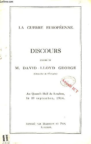 DISCOURS PRONONCE PAR M. DAVID LLOYD GEORGE - au queen's Hall de londres le 19 septembre 1914 / LA GUERRE EUROPEENNE. book Download DISCOURS PRONONCE PAR M. DAVID LLOYD GEORGE - au queen's Hall de londres le 19 septembre 1914 / LA GUERRE EUROPEENNE. book or read online here in PDF or EPUB. Please click button to get DISCOURS PRONONCE PAR M. DAVID LLOYD GEORGE - au queen's Hall de londres le 19 septembre 1914 / LA GUERRE EUROPEENNE. PDF book book now. All books are in clear copy here, and ...